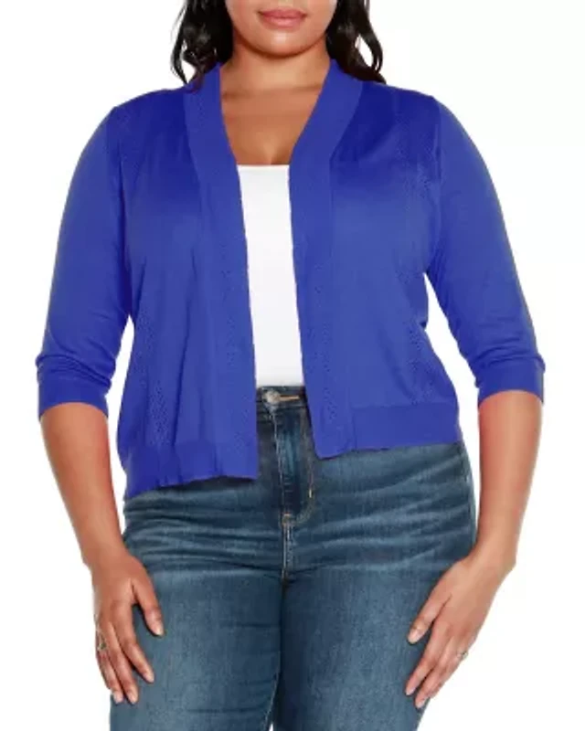 Plus Open-Front Pointelle-Trim Cardigan Sweater