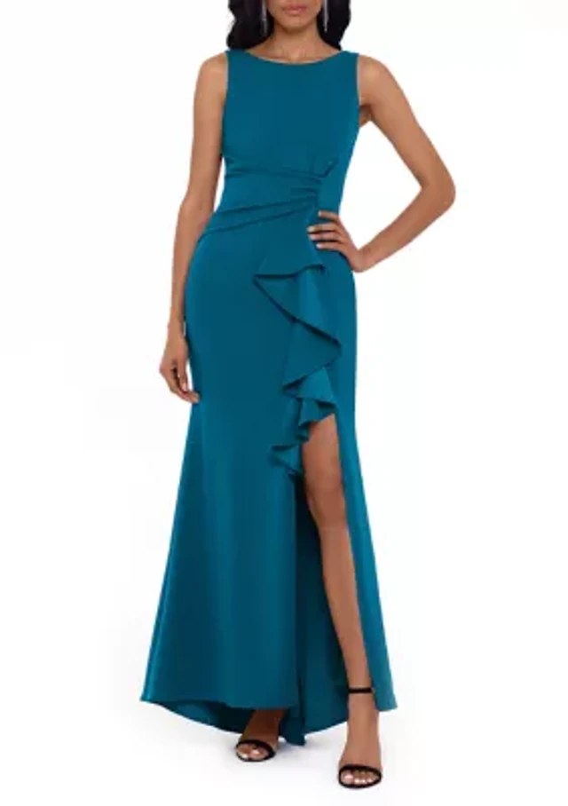 Women's Sleeveless V-Neck Side Ruffle Gown