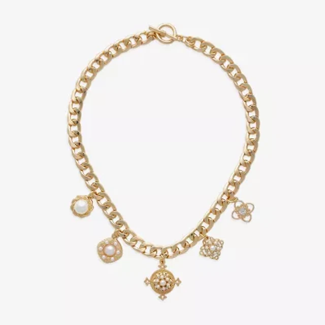 Bijoux Bar Delicates Gold Tone Womens Glass Round 16 Inch Pendant Necklace