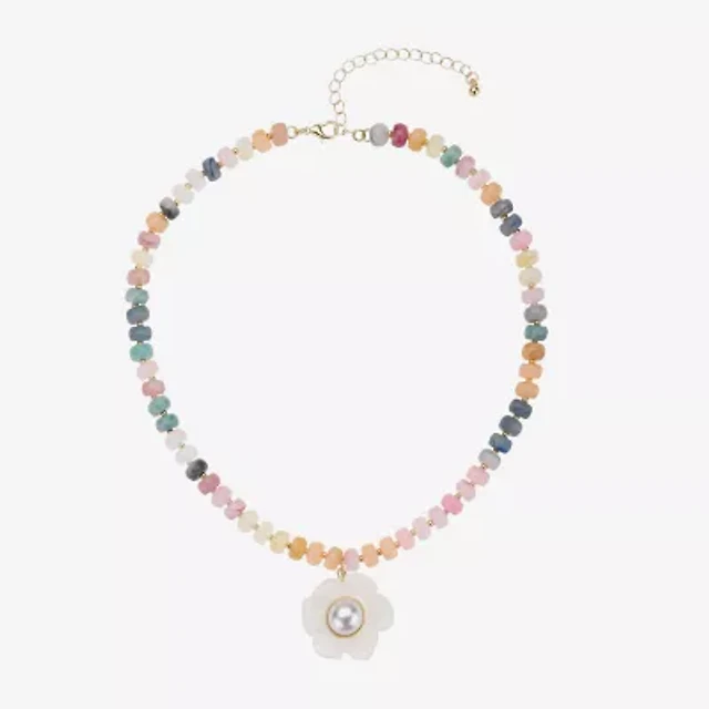 Bijoux Bar Womens Glass Simulated Pearl Flower 16.5 Inch Pendant Necklace
