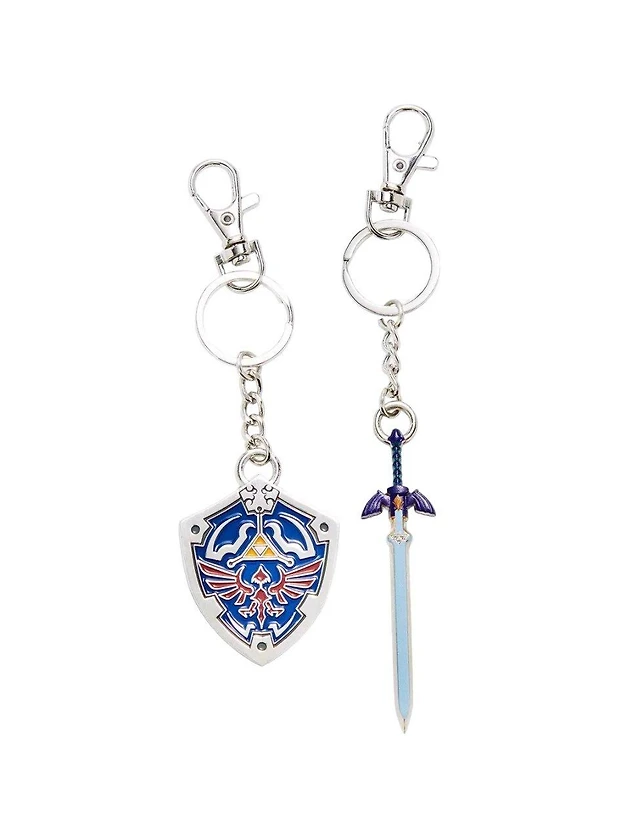 The Legend of Zelda Shield and Sword Metal Enamel Fill Best Friend Keychain Set