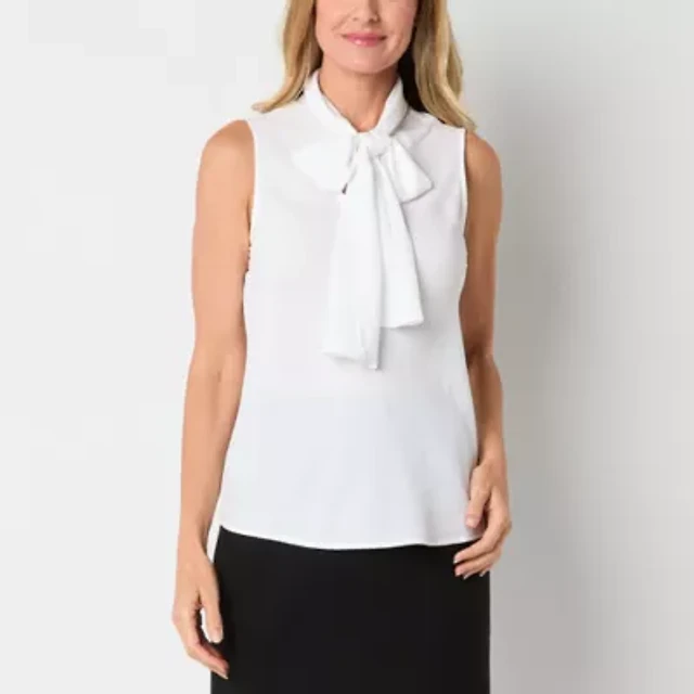 Black Label by Evan-Picone Womens Split Tie Neck Sleeveless Blouse