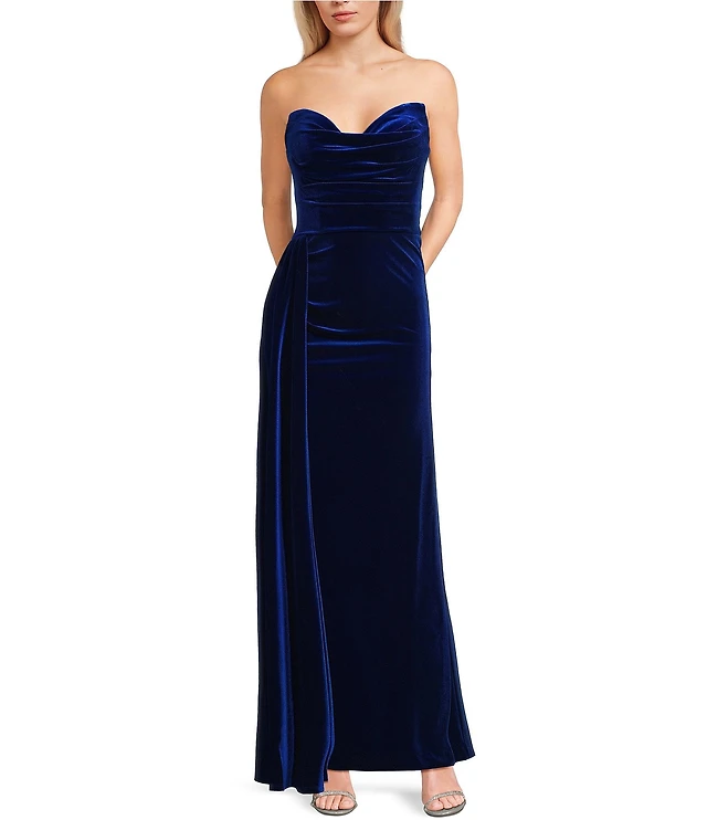 Blondie Nites Velvet Strapless Drop Waist Satin Bubble Bow Dress