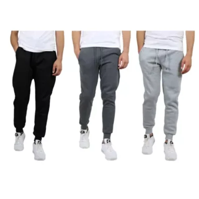 Men's Fleece Jogger Sweatpants With Zipper Side Pockets- 3 Pack