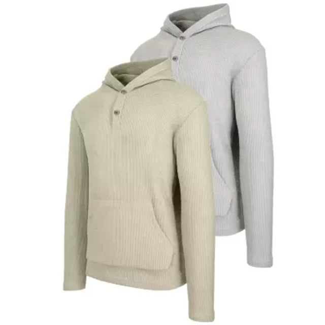 Blue Ice Men's Loose Fit Waffle Knit Thermal Henley Pullover Hoodie -2 Pack