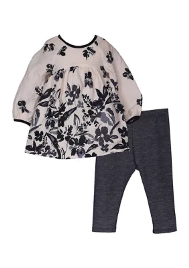 Baby Girls Printed Challis Top and Striped Leggings Set