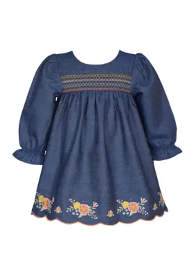 Toddler Girls Long Sleeve Denim Embroidered Dress