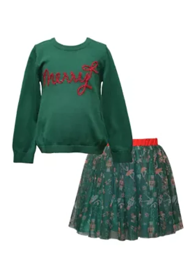 Bonnie Jean Little Girls Long Sleeve Butterfly-Appliqued Top & Mesh Skirt Set