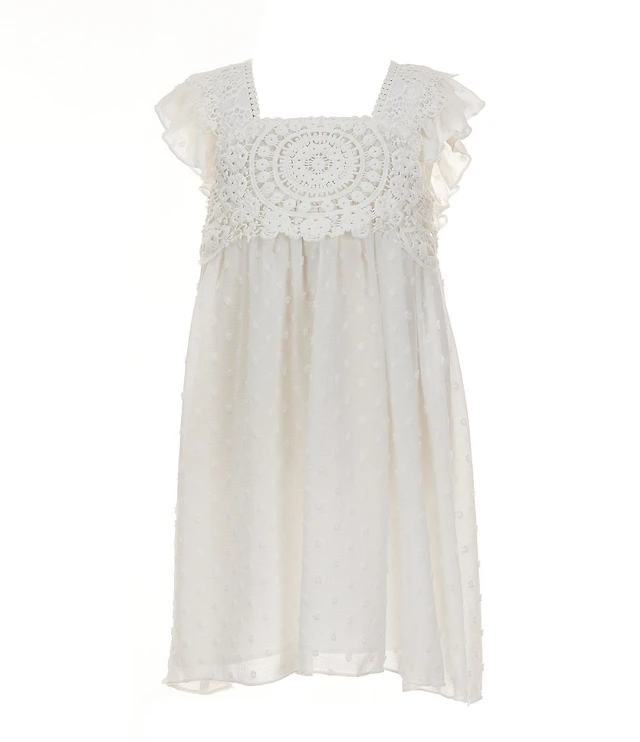 Bonnie Jean Little Girls Flutter Sleeve Tufted Chiffon With White Crochet Trim