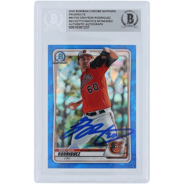 Grayson Rodriguez Baltimore Orioles Autographed 2020 Bowman Chrome Prospects Sapphire #BCP-22 Beckett Fanatics Witnessed Authenticated Card with "MLB Debut 4-5-23" Inscription