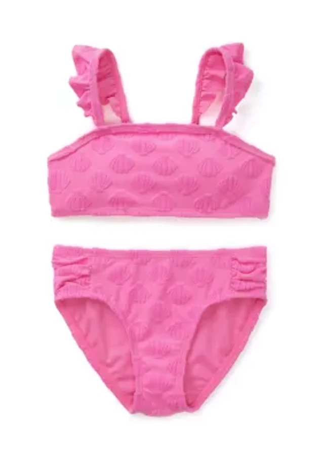 Girls 4-6x 2 Piece Shell Texture Swimsuit