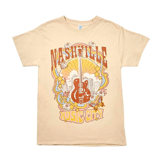 Women's 'Nashville Music City' Guitar Screen-Printed Tan Tee