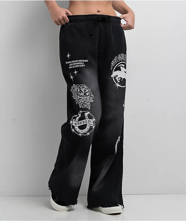 Broken Promises Rodeo Star Black Wash Sweatpants