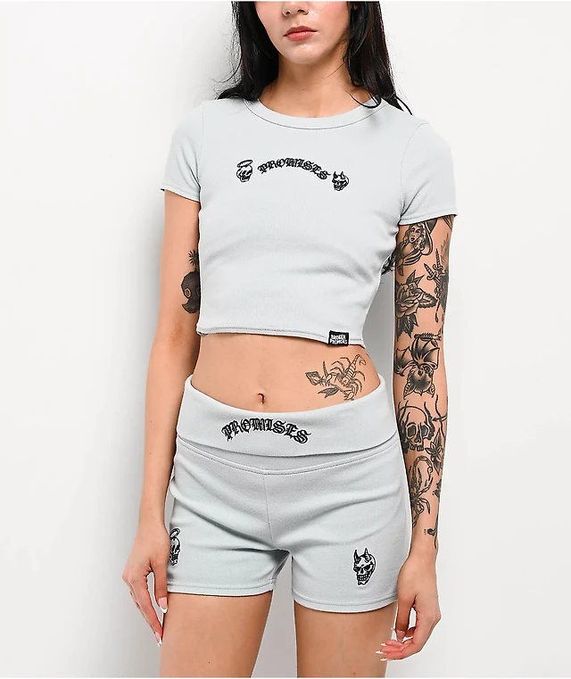 Broken Promises Beware Rhinestone Grey T-Shirt