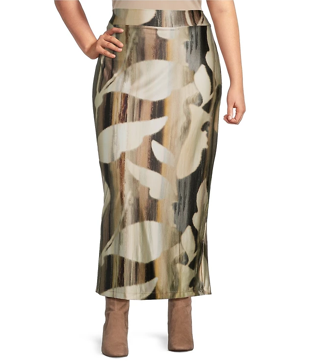 Bryn Walker Plus Size Coordinating Fiori Printed Viscose Jersey Elastic Waist Basic Leggings