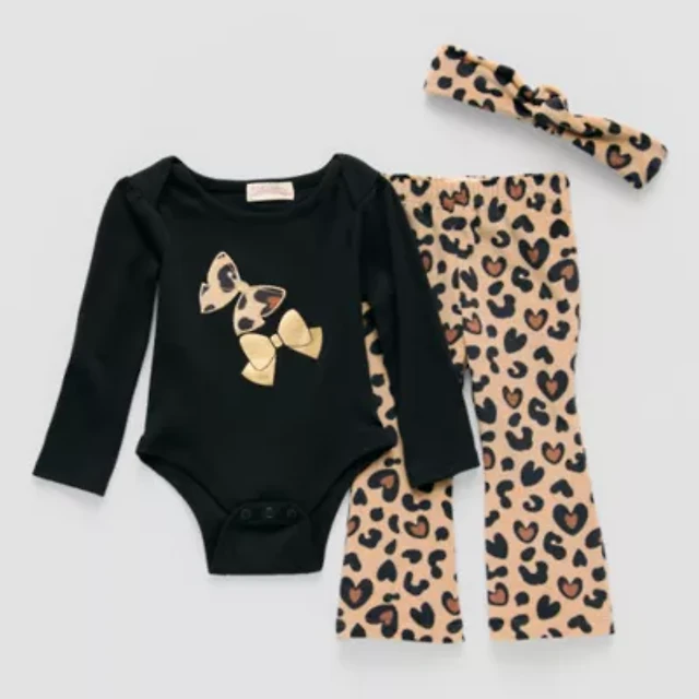 Btween Cheetah Bow Baby Girls 2-pc. Pant Set