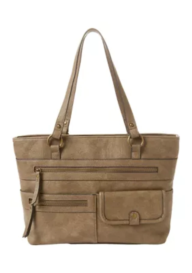 Washed Distressed Pebble Multi Comp Shoulder Bag