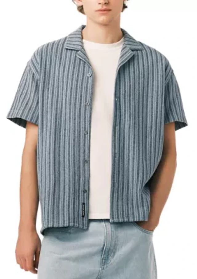 Buffalo David Bitton Salaman Camp Collar Button Front Stripe Top
