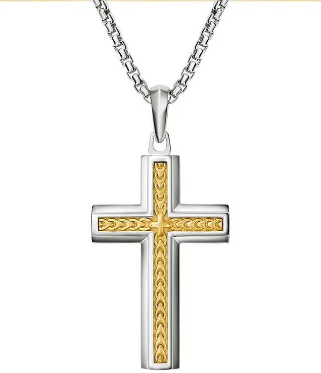 Bulova Steel Men's Rose Gold Two Tone Stainless Steel Bar-Shaped Long Pendant Necklace
