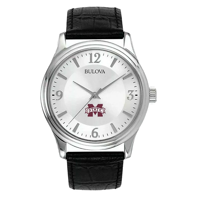 Men's Silver Mississippi State Bulldogs Leather Watch