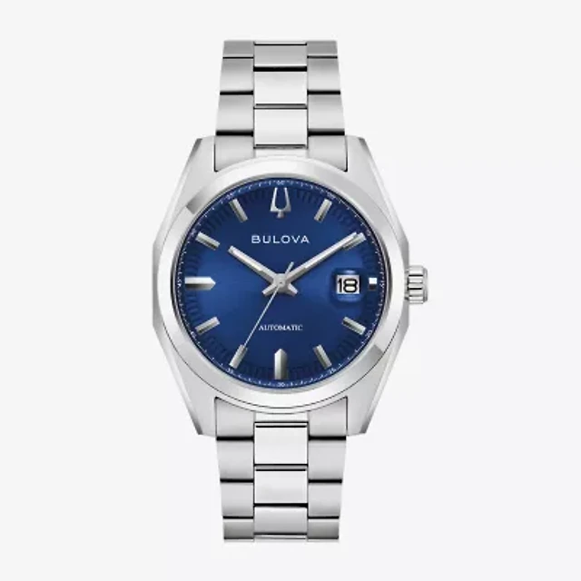 Bulova Surveyor Mens Automatic Silver Tone Stainless Steel Bracelet Watch 96b436