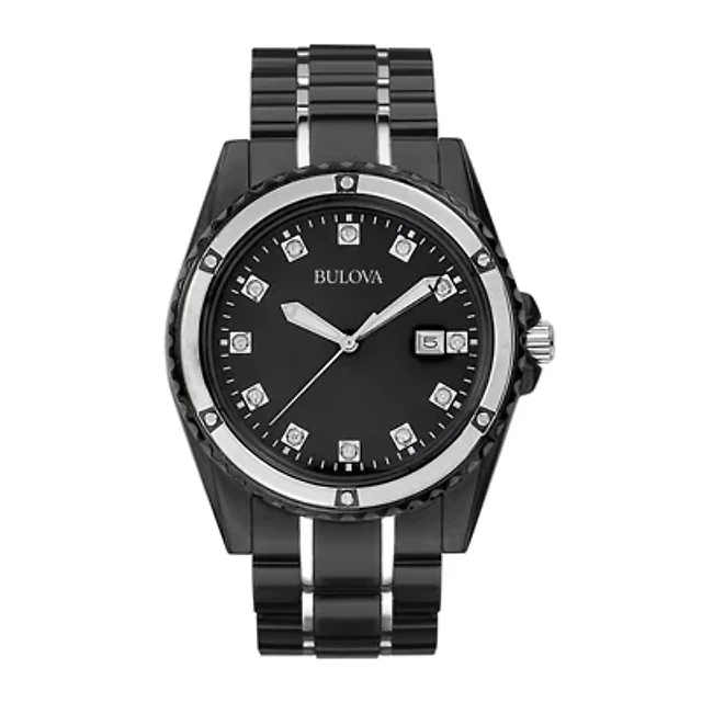 Caravelle Designed By Bulova Mens Diamond Accent Black Stainless Steel Bracelet Watch 45d108