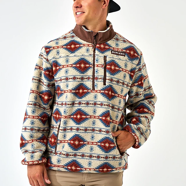 BURLEBO Men's Arizona Aztec Mountain Fleece Sherpa 1/4-Zip Jacket