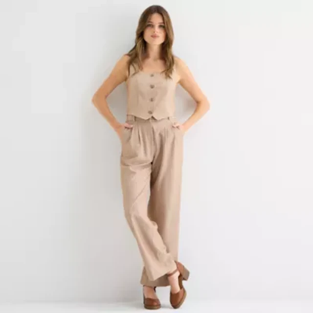 by&by Womens Juniors Wide Leg Mid Rise Trouser