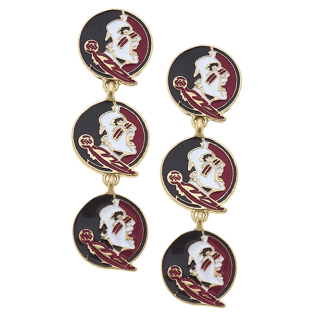 Women' CANVAS Style Florida State Seminoles Triple Drop Enamel Earrings