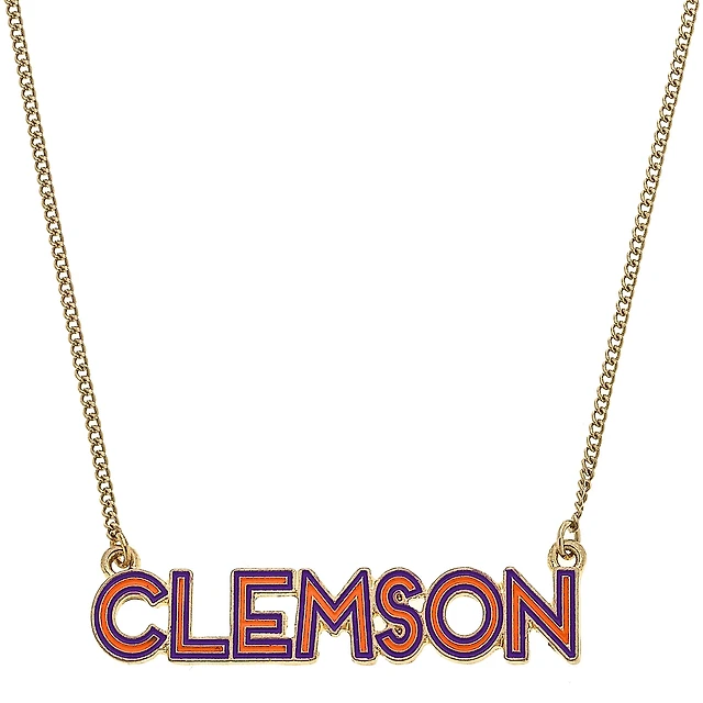 Women' CANVAS Style Clemson Tigers Enamel Script Outline Necklace