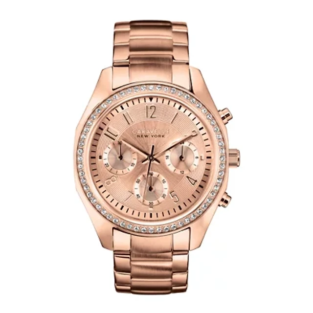 Caravelle New York® Womens Crystal-Accent Rose-Tone Stainless Steel Watch 44L180