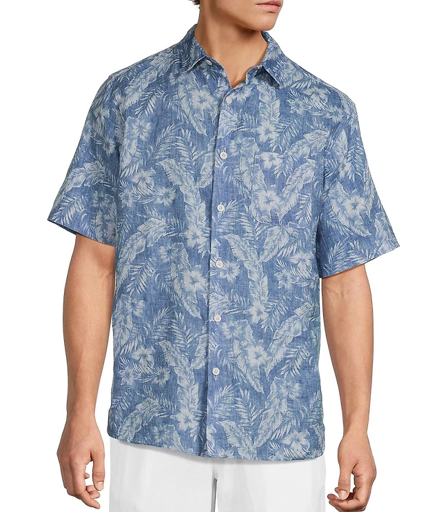 Caribbean Linen Burnout Print Short Sleeve Woven Shirt