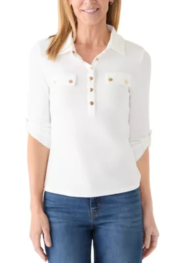 Plus Long Sleeve Cold Shoulder Woven Blouse