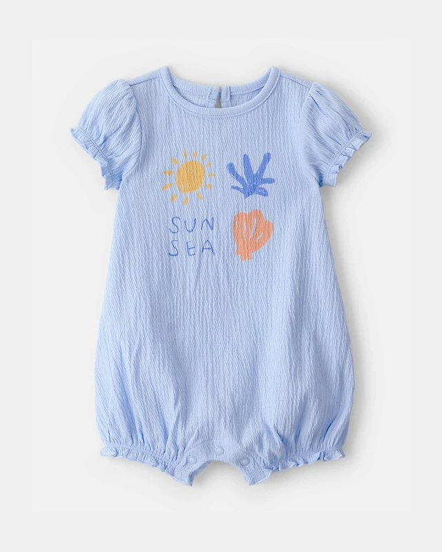 Baby Girl 'Sun Sea' Short-Sleeve Romper - Blue