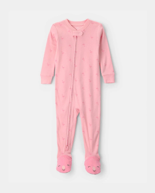 Baby Girl Flamingo PurelySoft 2-Way Zip Snug Fit Sleep & Play Pajamas - Ivory