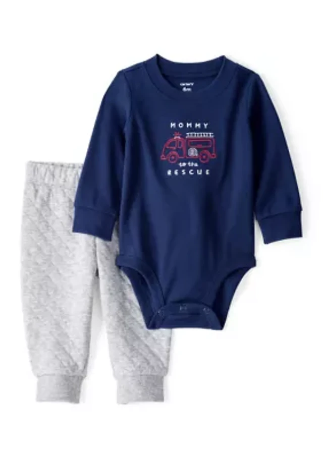 Baby Boys Printed Bodysuit and Suspender Pants Set