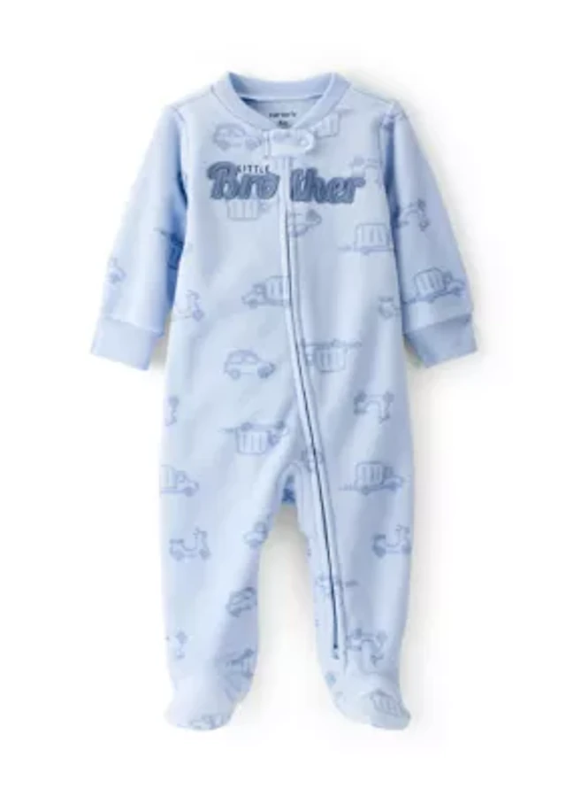 Baby Girls Santa Print Loose Fit Fleece Long-Sleeve Sleep & Play Pajamas