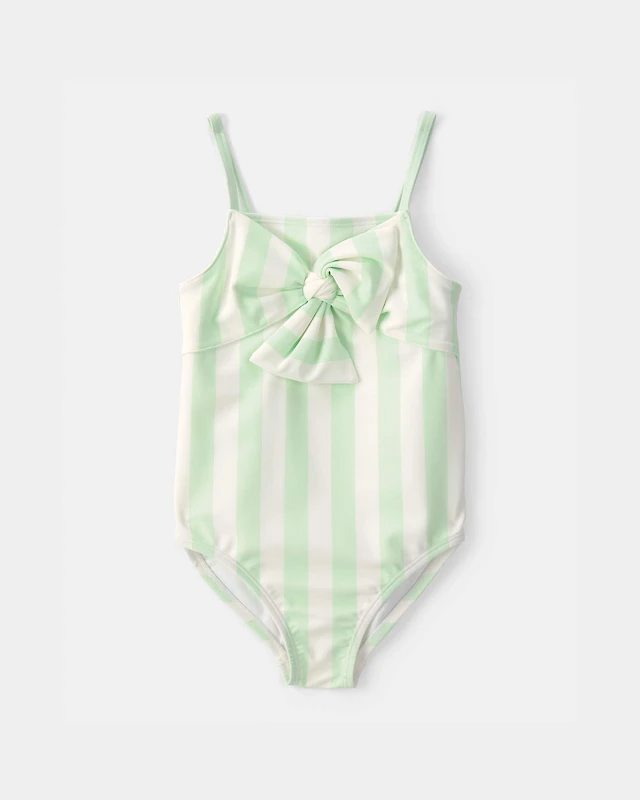 Toddler Girl 1-Piece Striped Swimsuit - Green/Ivory
