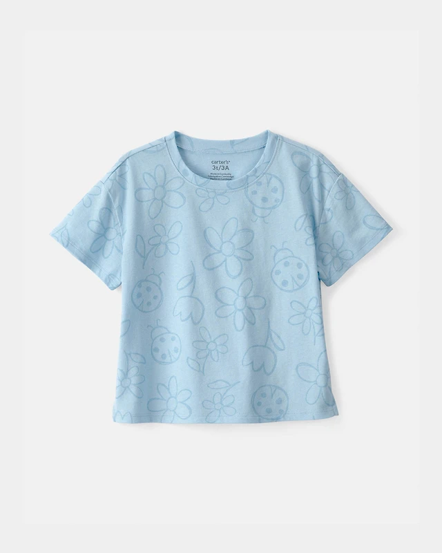 Toddler Girl Ladybug Floral Relaxed Top - Blue