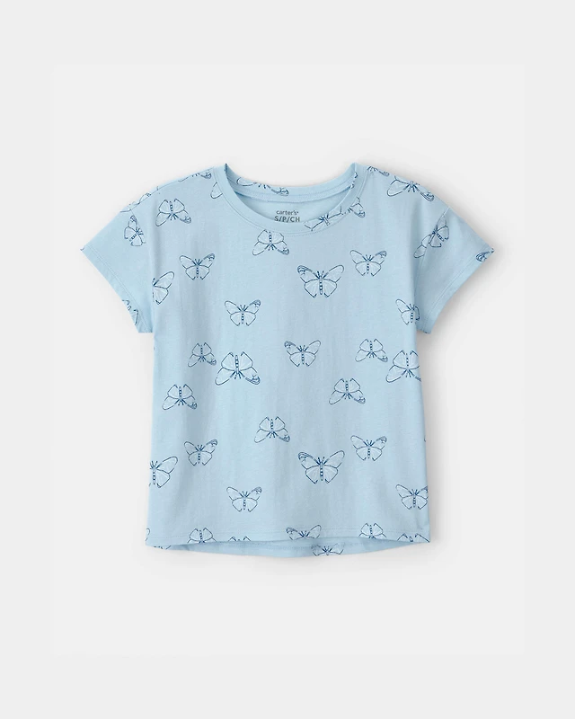 Girls Floral Gauze Short-Sleeve Top & Short Set - Blue