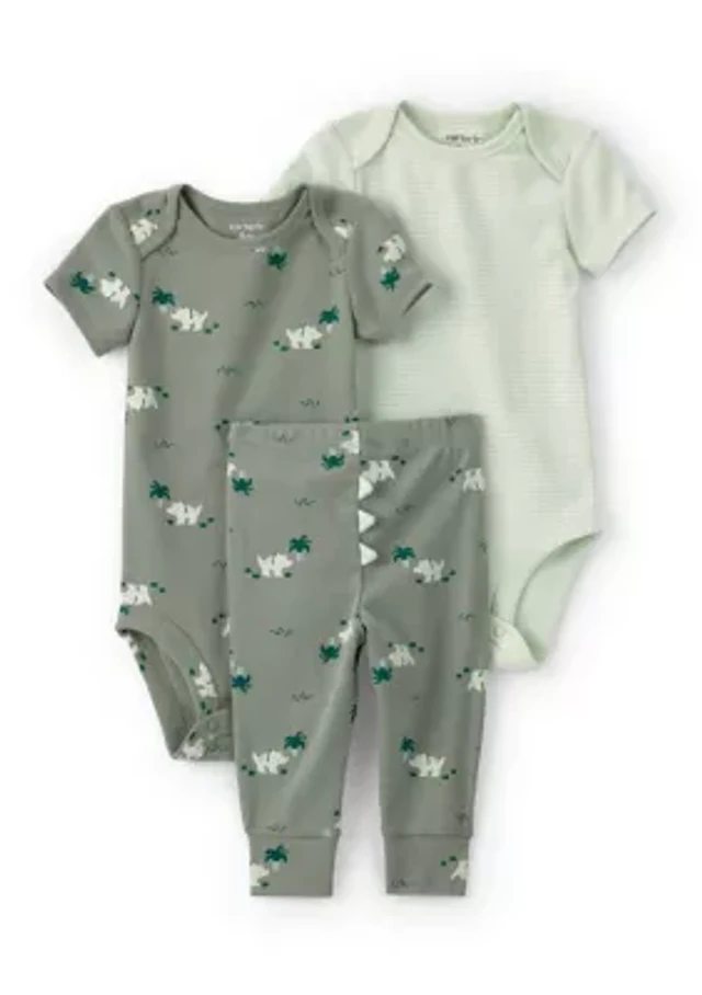 Baby 2-Piece Hippo Terry Pullover Sweatshirt & Pant Set - Green