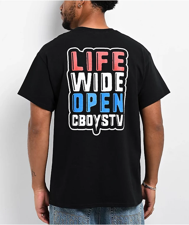 CboysTV Red, White, & Blue Life Wide Open Black T-Shirt