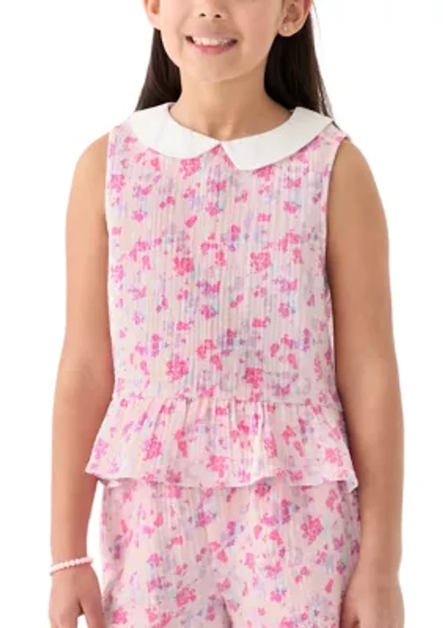 Women's Flutter Sleeve Pleated Floral Blouse