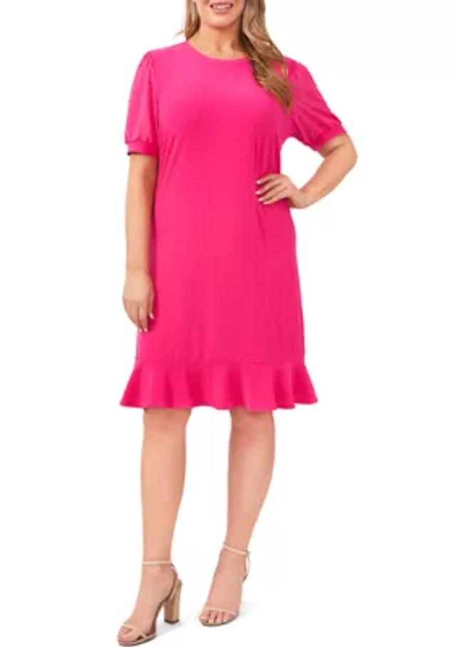 CeCe Plus Size Bow Mock Neck Short Sleeve Flounce Hem A-Line Dress