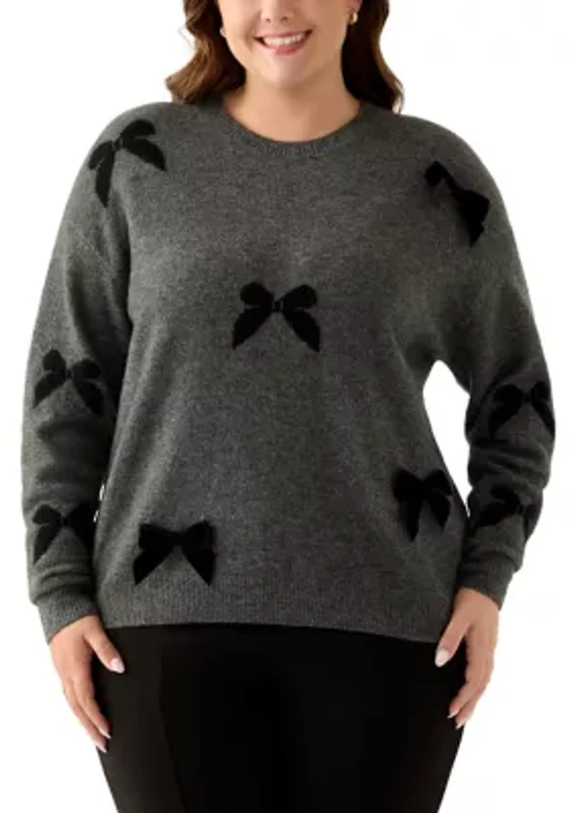 Plus Long Sleeve 3D Bow Applique Sweater