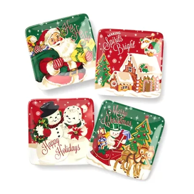 Certified International Santa'S Retro Christmas 4-pc. Ceramic Appetizer Plate