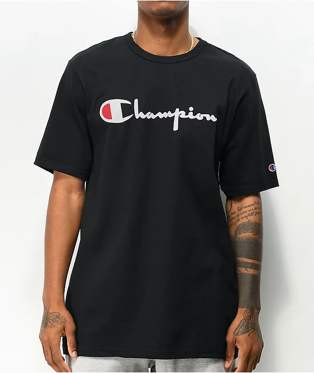 Champion Script Logo Black & White Long Sleeve T-Shirt