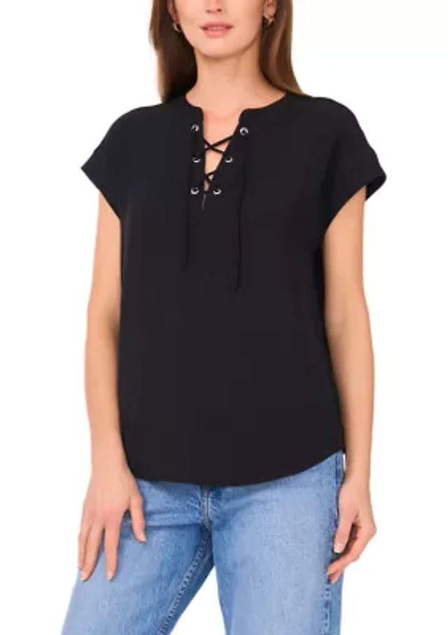 Women's Short Sleeve Cross Tie Blouse
