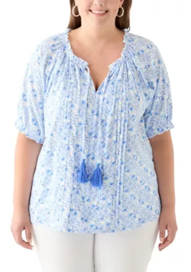 Plus Short Sleeve Knit Peasant Top