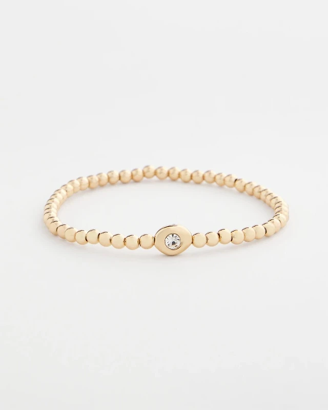Goldtone Oval Beaded Stretch Bracelet